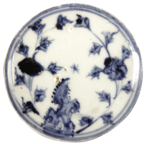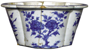 在古代青花瓷繪中,以植物花卉蔬果最為豐富。不僅各種花卉直接作為畫面主題入畫,而且常以花卉作為人物畫、山水畫的背景或配景。由于所繪花卉佳果多有美好寓意,故使青花瓷格外生輝,成為上至官宦、下至百姓所喜聞樂(lè)見(jiàn)的紋飾。
