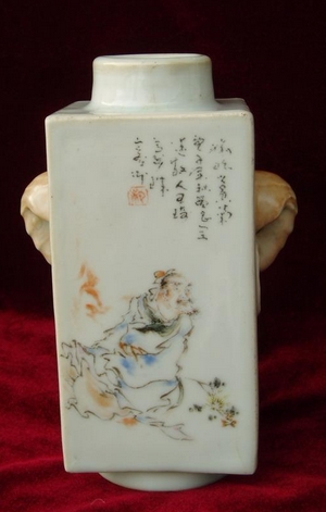 王琦 (1886--1933)為“珠山八友”之首,字碧珍,別號陶迷道人。祖籍安徽,后遷居江西新建縣。王琦幼年曾讀私塾,酷愛繪畫。父親是販鹽船戶,曾隨父在水上生活。王琦擺脫了錢的影響,轉(zhuǎn)師為乾隆間的“揚州八怪”的黃慎。模仿黃慎寫意法畫衣紋,線條自由生動,運用粉彩畫人物臉面、有立體感、富有新意。王琦用筆豪放、富于變化,所繪花鳥魚蟲各具特色。