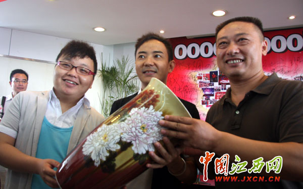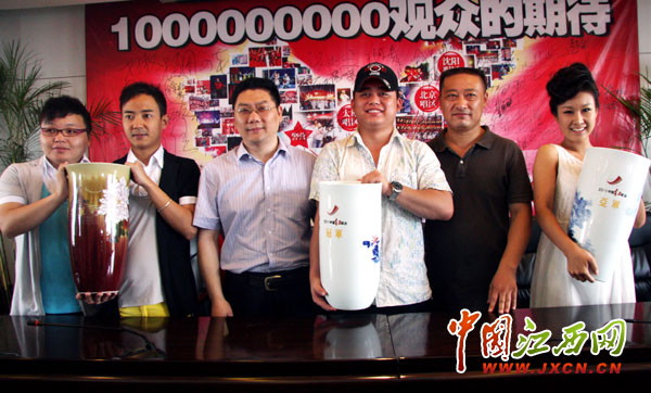 景德鎮(zhèn)陶瓷藝術大師余欣向2011紅歌會三甲送來陶瓷獎杯。