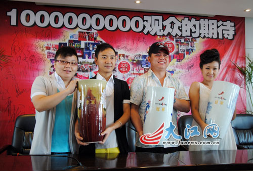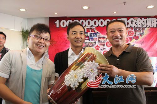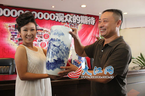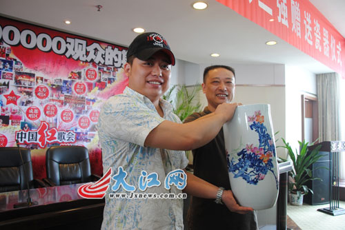 為了充分詮釋作品所體現(xiàn)的紅歌精神,余欣還先后兩次登上井岡山寫生,最后選定玉蘭瓶作為器型,采用純手工制成,胎體釉料精選細(xì)膩,由下向上漸漸擴(kuò)展,意為積極向上發(fā)展。當(dāng)看到紅歌三甲捧著紀(jì)念品時,余欣非常激動,他表示自己終于與紅歌結(jié)緣了。