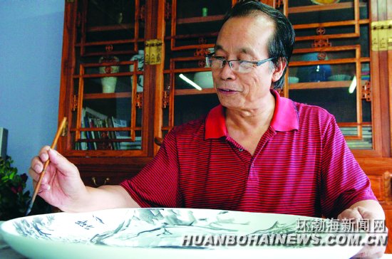 以獨(dú)創(chuàng)深刻瓷工藝、現(xiàn)代白瓷青花及釉下多彩工藝聞名的范有祥,從事陶瓷藝術(shù)創(chuàng)作已40余年。他將中國(guó)寫意畫及書法篆刻創(chuàng)作心得融于陶瓷藝術(shù)創(chuàng)作之中,講究自然與人文裝飾及寫意精神。他是高級(jí)工藝美術(shù)師,去年榮獲中國(guó)陶瓷藝術(shù)大師稱號(hào)。圖為范有祥正在為即將召開的陶博會(huì)創(chuàng)作新作品。