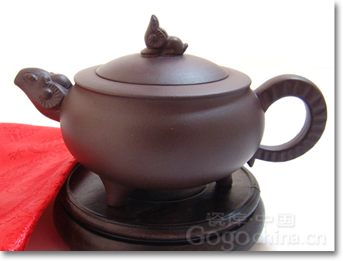 而在陶瓷生產(chǎn)中,自輪制成型工藝發(fā)明后,圓形器便成了器形的主流,這是因為圓器使用方便,易于生產(chǎn)。但是輪制成型的器物受到同心圓的制約,形體只能上下有變化,使造型局限在一定范圍內(nèi)。而紫砂壺則打身筒和鑲身筒兩種基本手工成型,這使宜興陶工不單可制作圓形等類的對稱形體,亦可做出許多非對稱和有雕塑感的茶壺類。這種有機造型的形體,具有上下、前后、左右三度空間,造型領(lǐng)域的擴大,使壺體的設(shè)計樣式更豐富多變,花貨類中的樹癭壺、束柴三友壺、南瓜壺和梅干壺及光貨類中的伏虎壺、追月壺和小之泉壺等都是非對稱形式的有機造型表現(xiàn),這種造型是通過周視效果來表現(xiàn)其整體統(tǒng)一感,其設(shè)計是多層次的結(jié)構(gòu)變化。設(shè)計者把造型最富變化的線、面、體表現(xiàn)在壺體的主觀面,通過視覺的流動,使各部分造型在連續(xù)變化中取得有機的溶合。如南瓜壺,它以視覺上的回環(huán)轉(zhuǎn)向來表達(dá)自然生機的變化感和造型上的整體感。