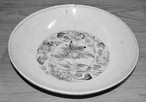 記者注意到,在“孫記古玩店”內(nèi)展柜一角擺放著一件大盤,旁邊用卡片標(biāo)注著“清仿哥釉七星盤”。孫先生介紹說(shuō),由于宋代哥窯在后世備受青睞,故明清出現(xiàn)較多的仿哥釉瓷,其中以明宣德、成化和清雍正最為成功。該大盤胎質(zhì)細(xì)潤(rùn),通體不規(guī)則開(kāi)片自然交錯(cuò),釉面均有片紋,圈足內(nèi)有七個(gè)絳色支釘均勻分布,七星盤之名由此而得。但與宋代哥窯瓷器相比,雍正仿哥釉色澤尚欠溫潤(rùn)肥厚,器形略顯拘謹(jǐn)。孫先生說(shuō),哥窯一個(gè)獨(dú)具特色的地方正是在于它大小不一自然形成的開(kāi)片紋,古時(shí)又稱為“文武片”。這種自然開(kāi)裂現(xiàn)象形成的紋路獨(dú)具魅力,有一種承載時(shí)間與歷史的缺陷之美。