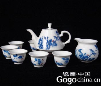 圖:釉上彩陶瓷青花手繪花鳥茶具套裝-功夫茶具