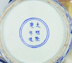 在瓷器的底部或其它部位,往往有表明年代,窯名,人名,堂名,或者表示贊頌,祝愿等內(nèi)容的文字,也有的器底或器里有某種識別性的圖案,這些統(tǒng)稱為“款識”。一般說來,款識是瓷器裝飾的附屬物,好的款識與裝飾畫面相配,可以增強器物的藝術(shù)性?钭R表達的內(nèi)容可分為:紀年款,堂名款,陶人款,吉言款,贊頌款,花樣款等六大類。按書寫部位分,主要有底里銘和額銘。將款字寫于器物底部的稱底里銘,由于款識的內(nèi)容,格式,字體,書法各方面都具有鮮明的時代特征,所以它對瓷器的斷代,斷定窯口和辨別真?zhèn)味加兄匾饔谩?/p>