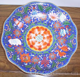 圖:景泰藍手工藝品果盤|藝術(shù)瓷盤|佛教用品貢盤