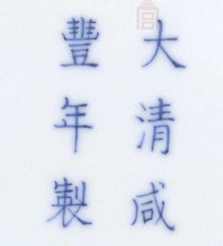 咸豐(1851~1861),為清文宗奕詝的年號。咸豐一朝為清王朝衰落的關鍵年代,內憂外患不斷,太平天國使清王朝無法顧及瓷器生產,后太平軍攻克浮梁縣,導致了御窯廠毀壞,造成官窯無法生產。傳世咸豐官窯極為少見,民窯也多半不寫款識。目前所見咸豐官窯年款多為楷書款。