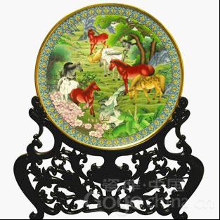 圖:景泰藍30寸群馬盤-藝術(shù)瓷盤