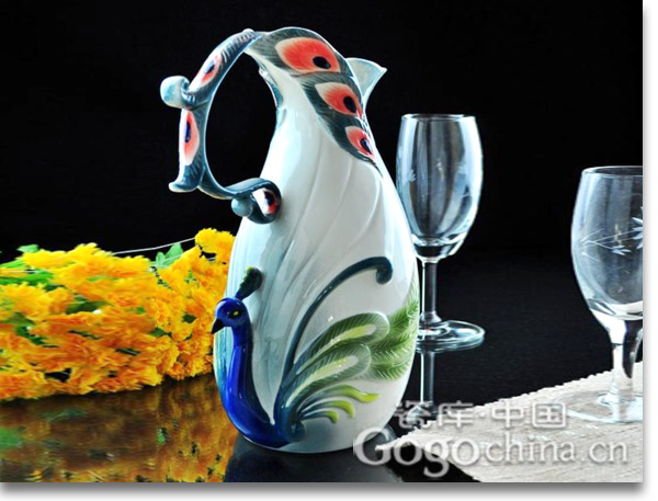 圖:春節(jié)禮品 ·孔雀琺瑯彩藝術(shù)花瓶10.5寸
