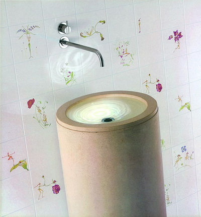 看著白色陶瓷面盆里漂浮著片片“桃花”、朵朵“玫瑰”,通過手繪讓陶瓷充滿生命力而又個性張揚,你會驚訝發(fā)現(xiàn),就連一向素面朝天的衛(wèi)浴潔具也有了賞心悅目的新面孔。