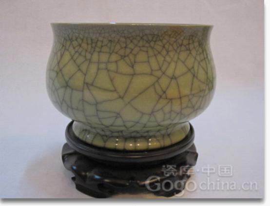 圖:龍泉青瓷手拉坯米黃釉開片缽