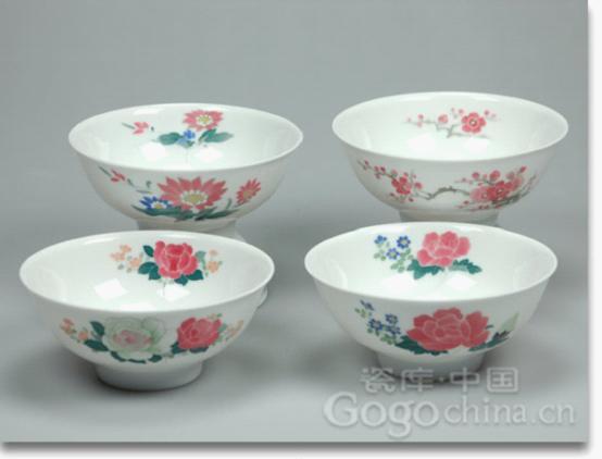 圖:精品毛瓷·毛主席用瓷四季花卉碗4件套