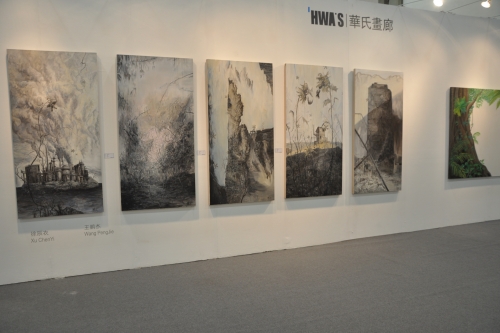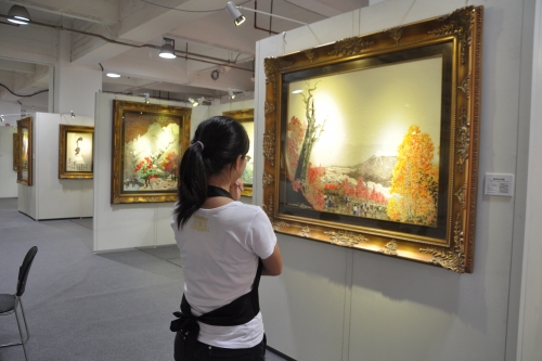 主題為“藝術(shù)就是財富”的2011上海藝術(shù)博覽會14日上午在上海世貿(mào)商城開幕。今屆的博覽會有12個國家的155家畫廊參加展覽,全場有數(shù)千件油畫、國畫、版畫、雕塑、水彩、攝影、裝置、陶瓷等作品在四個展館參與交易,其規(guī)模繼續(xù)“領(lǐng)跑”亞洲各大藝術(shù)品交易盛會。藝博會于18日結(jié)束。這是記者13日晚在預展上拍攝的一組畫廊圖。
