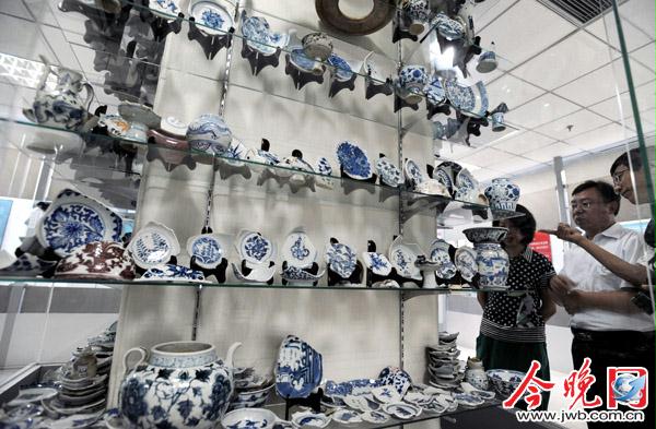 該館還展出幾萬(wàn)片青花殘瓷及多個(gè)窯口的殘瓷片。據(jù)該博物館館長(zhǎng)、天津市河北區(qū)收藏家協(xié)會(huì)會(huì)長(zhǎng)邊正明介紹,這些瓷片中80%以上在天津老城廂、海河周邊等地區(qū)出土。