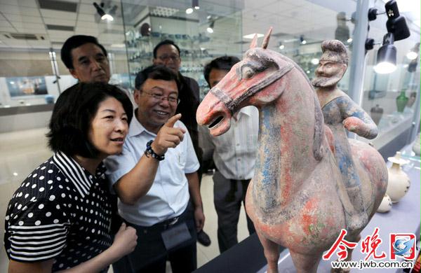 圖為古陶瓷博物館館長(zhǎng)為市民講解“胡人馬”。