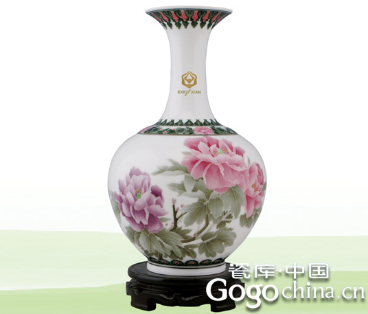 圖:釉下彩手繪牡丹高檔陶瓷花瓶限量999件-世界園藝博覽會禮品
