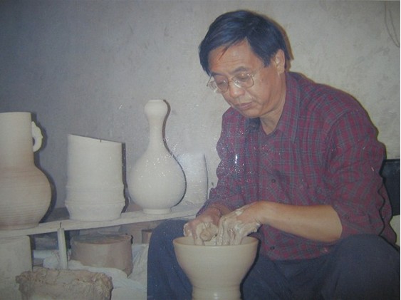 圖2:劉富安大師正在專(zhuān)注的地進(jìn)行鈞瓷創(chuàng)作