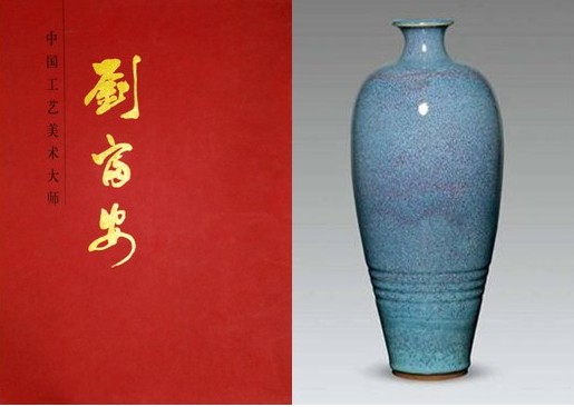 圖3:大紅袍畫(huà)冊(cè)《中國(guó)工藝美術(shù)大師劉富安》封面及在2011年納高拍出134萬(wàn)的大紅袍鈞瓷·梅瓶
