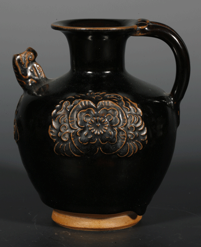 唐代 黑釉貼花執(zhí)壺