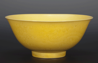 明成化 黃釉暗刻龍紋碗