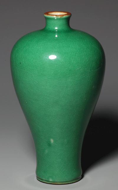 清康熙 蘋(píng)果綠釉梅瓶