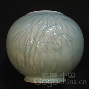 圖:龍泉青瓷弟窯梅子青竹報平安天球瓶