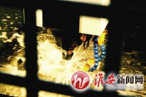在工博會現(xiàn)場,淮安通用水刀科技有限公司將公司的產(chǎn)品搬到現(xiàn)場演示。隨著開關(guān)的啟動,一個細(xì)小的水柱在高壓作用下,射向下面的鋼板。這個水柱產(chǎn)生的壓力可以達(dá)到320Mpa,相當(dāng)于3200KG的水壓作用在1mm的水柱上。目前,可以切割厚達(dá)15cm的鋼板。
