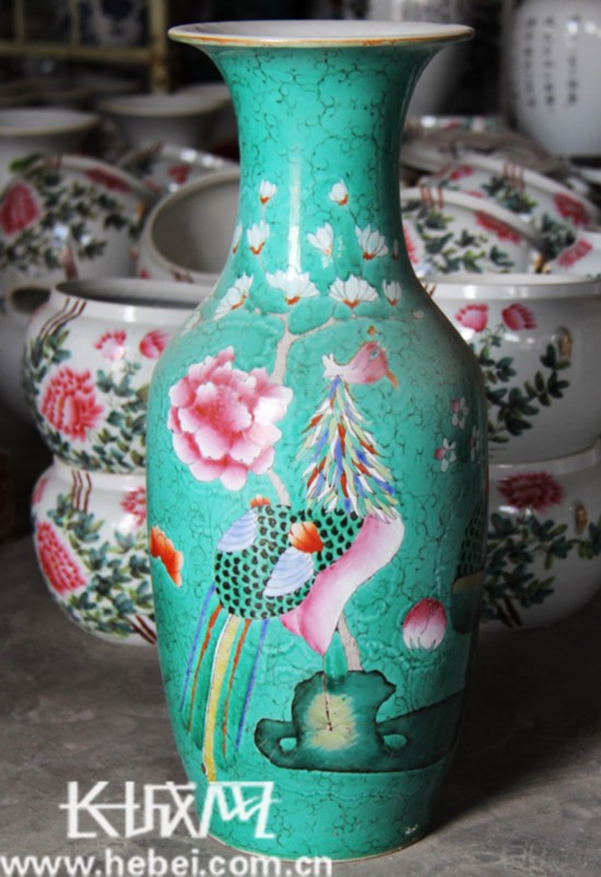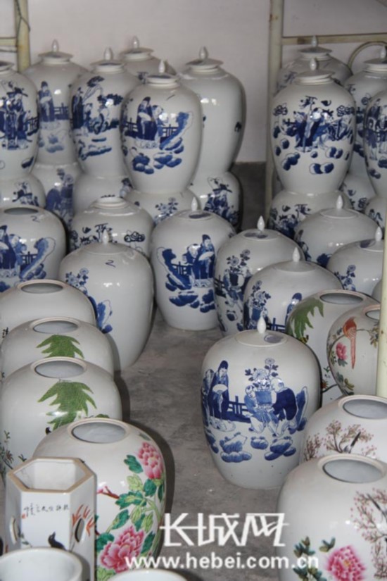 長城網(wǎng)廊坊9月20日電 仿民國時期瓷器、同治瓷器、將軍罐、冬瓜壇、西瓜壇等多種瓷器在霸州王莊子鄉(xiāng)靳家堡村華藝仿古瓷廠處處可見。