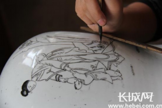 1984年,靳家堡村引進仿古瓷彩繪技術(shù),主要仿制明、清兩代的繡墩、瓶罐、魚缸、花盆及人物等產(chǎn)品。其中瓷板畫《清明上河圖》、《百駿圖》、《百美圖》、《八駿圖》等,在廣交會上受到國內(nèi)外人士的好評,產(chǎn)品行銷海外十幾個國家和地區(qū)。