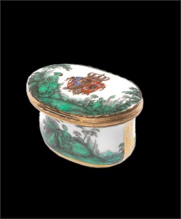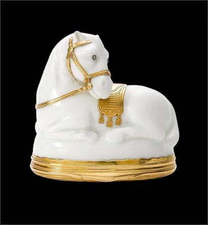 鼻煙盒的制作是為了防止煙草水分蒸發(fā)。鼻煙盒都以精細的陶瓷制作并飾以黃金,瓷釉,珍珠母及各種珍貴的寶石。每一個鼻煙盒都是一件藝術(shù)臻品。整一個系列也讓人縱覽了歐洲的高級知名瓷器,有卡波迪蒙蒂陶瓷,邁森陶瓷,富爾達陶瓷及塞夫勒陶瓷。