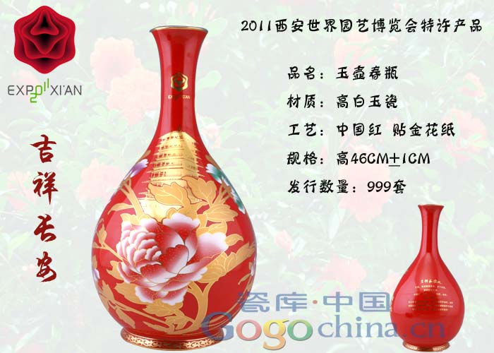 圖:世園會(huì)禮品中國(guó)紅瓷吉祥長(zhǎng)安陶瓷花瓶