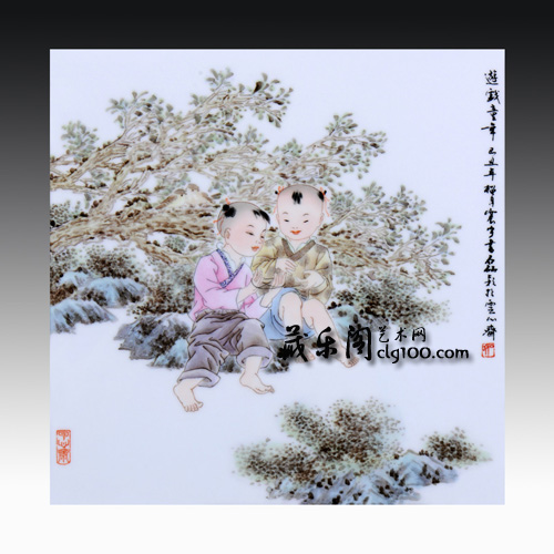 粉彩《游戲童年》 30*30cm 藏樂閣館藏