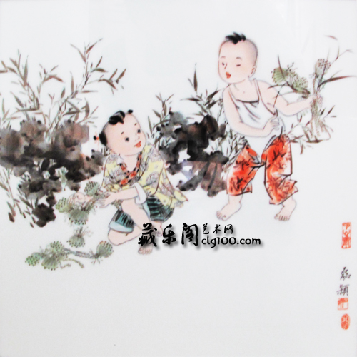 97年至今,除了典雅含蓄的仕女畫外,李磊穎的瓷畫作品中數(shù)量最多,質(zhì)量最高的當屬各類童子形象,這些形象既有作者自己對幸福童年的追憶,也有初為人母后的溫馨情懷的體驗,它是一個女性藝術(shù)家處于人生重要階段時種種細膩情緒的外化和再現(xiàn)。