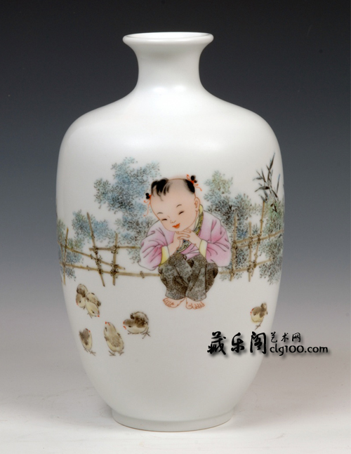 李磊穎在她的陶瓷藝術(shù)創(chuàng)作中也自然地保持了一種女性特有的細膩豐富的情感,和泥土有著天然的親和力,采用善用的方式——以細膩和耐心來完成她的作品,并滲入情感的關(guān)懷。在她的作品中大多采用粉彩的表現(xiàn)手法,以工筆重彩手法入畫,線條流暢細密,人物刻劃精細、傳神,極見功力。恰如其分地表達出了童心童趣的天真無邪一面。