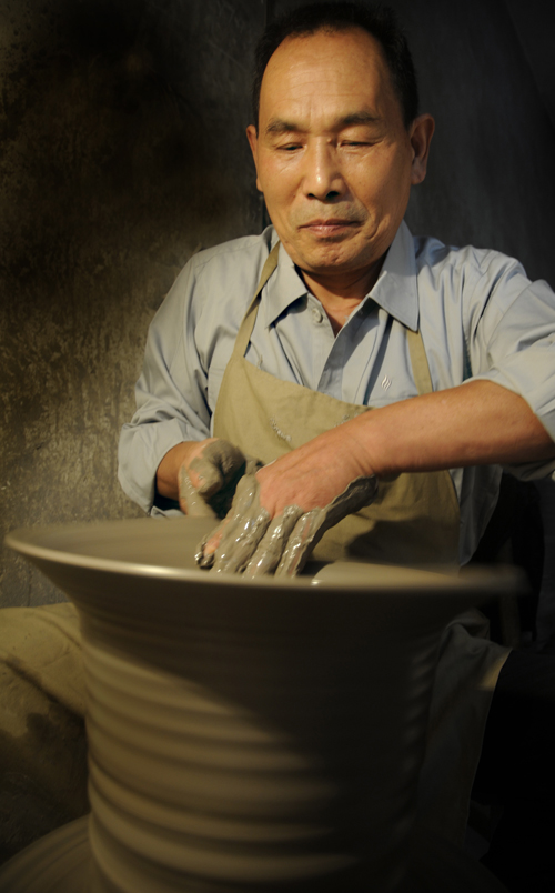 朱文立:汝瓷是我們中華民族傳統(tǒng)民族文化的精華,它是對中華民族長期以來所追求的那種自然、純凈、含蓄美的體現(xiàn)。傳統(tǒng)的汝窯作品種類不多,但個個經(jīng)典,從傳統(tǒng)我們學(xué)到了很多,但一味傳統(tǒng)不能得到快速的發(fā)展,創(chuàng)新確實(shí)是促進(jìn)發(fā)展的原動力,我也一直思索著這個問題。創(chuàng)新不能脫離汝窯的精神,否則那就不叫汝窯,叫現(xiàn)代陶藝或別的什么了,怎么把現(xiàn)代的概念糅合于汝窯的藝術(shù)里面,這才叫創(chuàng)新。這幾年我們已經(jīng)在準(zhǔn)備并會推出具新元素的汝窯作品。