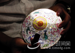 瓷器方面,大部分經(jīng)過(guò)初評(píng)的藏品都得到專(zhuān)家的認(rèn)可,但也有一些被專(zhuān)家認(rèn)為有疑問(wèn)或者分量不足于參加聯(lián)展。王先生帶了三件瓷器給專(zhuān)家鑒定,專(zhuān)家認(rèn)為三件瓷器都是清朝康熙年間的產(chǎn)物,但其藝術(shù)價(jià)值一般,不能參加聯(lián)展。