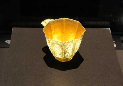 金碗,杯面上的舞伎長發(fā)飛揚(yáng),有胡人之貌。這是迄今中國境外發(fā)現(xiàn)的最為重要的唐代金器。