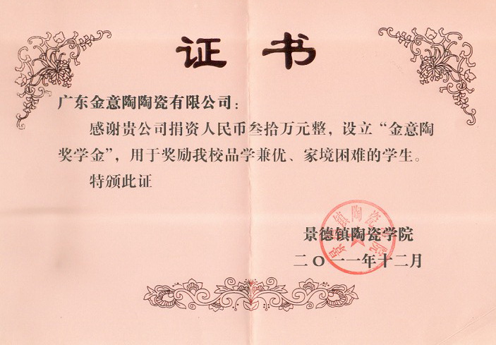 繼2008年向景德鎮(zhèn)陶瓷學院捐款50萬元之后,近期,我司又向該校捐助30萬元,作為愛心基金,專門用于資助成績優(yōu)異、家庭經(jīng)濟困難的學生。