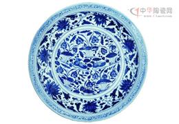 元青花蓮池鴛鴦紋折沿盤(香港佳士得供圖)