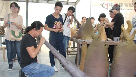 據悉,本次陶藝大會設有專業(yè)的陶藝演講和現場陶藝演示,富平陶藝村董事長徐都鋒、國際陶藝學會理事許以祺博士及各位陶藝家都進行了精彩的演講和陶藝現場演示,來自西安美術學院、西安文理學院、西安建筑科技大學、西安城市經濟學校300余名學生和陶藝家們進行了溝通和交流。