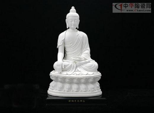 “釋迦牟尼佛”主管著中央娑婆世界,他有“大智文殊菩薩和大行普賢菩薩”兩位脅侍,號稱華嚴(yán)三圣。是這個(gè)世界的教化者,是佛教教主,是藏傳佛教崇敬的大日如來。其作品是以中國國家博物館之明代銅像為范本,采用“白如雪、潤如玉”的建白瓷,以瓷都德化傳統(tǒng)的陶瓷雕塑技藝構(gòu)造出“以仁來愛人,以仁愛這種的心來教化眾生”的“釋迦摩尼佛”。
