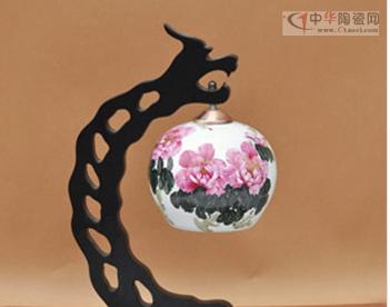 圖:景德鎮(zhèn)手繪粉紅玫瑰薄胎陶瓷臺燈