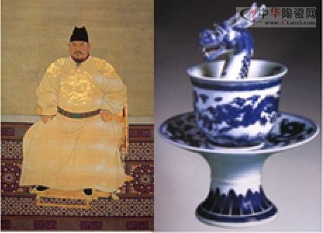 圖:朱元璋和他常用的明代青花瓷酒杯