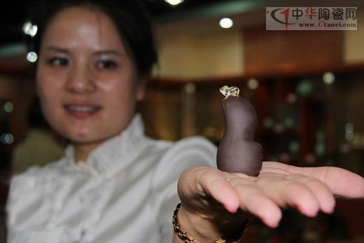 一家德化陶瓷企業(yè)向記者展示迷你“茶蟲”,別看它個小,淋開水后針尖大小的嘴孔還能噴水。