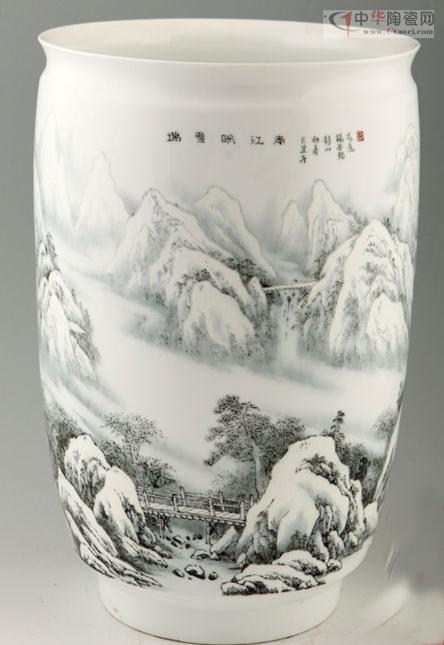圖:楊谷貽作品 瑞雪映江南陶瓷花瓶