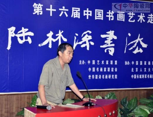 著名書法家、武術(shù)家、藝術(shù)評論家張勝利先生在進行總結(jié)發(fā)言時說,書法技法的創(chuàng)作背景當(dāng)隨文化大繁榮、大發(fā)展的背景而生。傳統(tǒng)是血脈、心智訓(xùn)練的過程、新手雙成是蛹到蝶的幻化過程。沒有幻化只能停留在文人時代。石濤先生說筆墨當(dāng)隨時代,現(xiàn)代正是東西方文化的碰撞的時代,融合的時代,是東成西就還是西進東漸,我們將拭目以待。技法可以學(xué)到,但兒童的心靈、心智不易學(xué)到,心理、思想、感情也各不一樣。中國蘭陵書派領(lǐng)軍人物陸林深先生展出的一百多幅作品風(fēng)格各有不同,說明他在孜孜不倦地探索,他在為中國蘭陵書派的發(fā)展壯大、為中國書法事業(yè)的發(fā)展作著自己的一份貢獻。當(dāng)今中國,書畫藝術(shù)正朝著“尚勢” “尚趣”的方向發(fā)展,隨著文化長征的逐漸推進,“尚勢”“尚趣”將會給更多的書畫家?guī)硇碌乃伎、新的實踐。藝術(shù)的功能不僅僅是“助人倫、成教化”,藝術(shù)的真正意義在與“完美人性”。希望有更多的書畫家參與到文化長征中來,用我們的行動去發(fā)現(xiàn)藝術(shù)的魅力和中國傳統(tǒng)文化給我們帶來的藝術(shù)寶庫。“尚勢”“尚趣”只是我對中國書畫藝術(shù)發(fā)展方向提出我自己的觀點,再此拋磚引玉,也希望我們書畫界的朋友提出新的觀點和寶貴意見和建議,為中國書畫藝術(shù)的發(fā)展積極地獻言獻策,用我們共同的努力為中國書畫藝術(shù)的發(fā)展建立新的里程碑,鋪就一條書畫大繁榮大發(fā)展的光輝之路。文化長征不是一二個人的事,希望更多人加入文化長征,為文化長征譜寫新的篇章。
