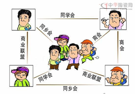 人以群分,物以類聚,話說有人的地方就有江湖,而江湖內(nèi)總能分出不同的派別,隱藏著許多不為人知的貓膩。建陶行業(yè)內(nèi)千絲萬縷的關(guān)系,更多的是以各種同學(xué)會、同鄉(xiāng)會、商會、聯(lián)盟等形式呈現(xiàn)。他們紛紛以“組織”為誘餌,引人上鉤。這些組織和活動無不披著一張“溫情”的外衣,而參與其中的人員,各懷各種目的,混跡組織,上演的可能是一出出人脈資源、利益資源的搶占和爭奪。要想在其中混,不妨先多了解一下那里的風(fēng)景到底如何。