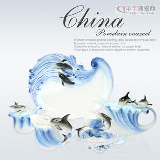 圖:16頭藍色海豚精品琺瑯瓷咖啡具套裝_春節(jié)禮品 全國包郵