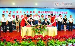 7月20日,山城區(qū)政府與意大利薇莎陶瓷(亞太)有限公司河南陶瓷生產(chǎn)基地項目簽約儀式在鶴壁迎賓館舉行。