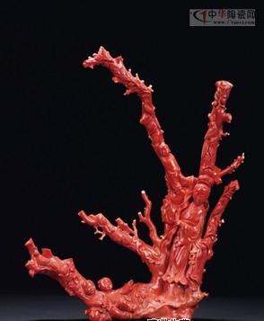 奪得該專場拍賣季軍的是一件高41cm的清代“珊瑚雕麻姑獻壽擺件”,此器以整塊珊瑚隨形雕就觀音童子擺件,材質(zhì)潤澤,刀工犀利,觀音雙眉似月,直鼻小口,神態(tài)沉靜祥和,旁立各態(tài)童子,肌圓骨潤,頗為頑皮,惹人憐愛。整器造型典雅飄逸,雕琢精湛,刻法有力,形神兼?zhèn)洌派畔,紅光四射,祥瑞盈堂。最終,其成交價格為66.7萬元。